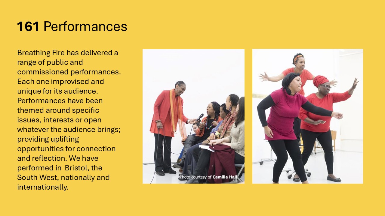 February | Workshop and performance for Bath Black Elders at Fairfield House, Bath, former home of Emperor Haile Selassie I. Arts Council England funded (as part of Breathing Fire's English Cities Arts Council funded tour October 2016 – March 2017). Theme: 'My World, Our World.'